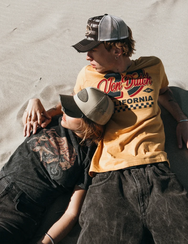 Icône intemporelle du style américain, Von Dutch fusionne héritage vintage et culture pop. Connue pour ses casquettes légendaires et son esprit rebelle, la marque s’impose dans l’univers de la Kustom Kulture avec des pièces audacieuses et authentiques.